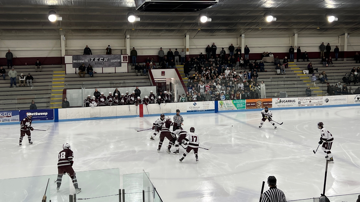 Chelmsford, MA – Tonight we made the trip to Chelmsford to take in the season opener for the Chelmsford Lions and the Westford Academy Grey Ghosts. The vibes inside the rink were immaculate with lots of energy from both student sections who were each rocking themes: jerseys for the Westford Academy students and ski goggles for the Chelmsford home crowd. Chelmsford also brought out the student Pep Band to play the Star Spangled Banner and during intermissions. This MVC DCL tilt promised to be a great way to start conference play for both squads.
