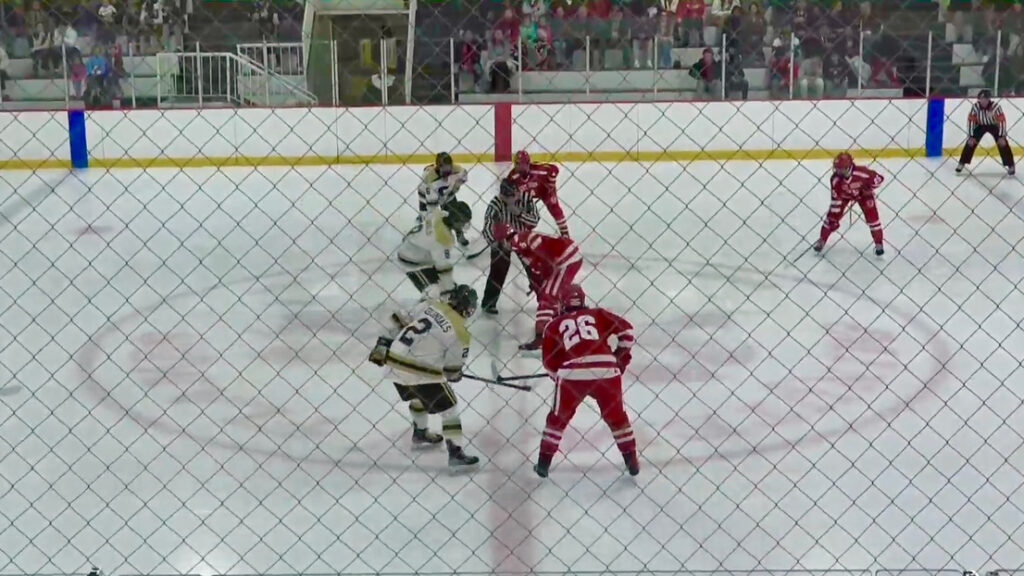 In a classic battle of The Publics vs The Catholics, the first period went to the Publics. From puck drop, the Colonials were buzzing all over the ice. Their forechecking made it tough for St. John’s to generate quick clean breakouts, and it would pay off early in the period. With 12:20 to go, junior speedster Ryan Kelley lost the puck on the wall in the Pioneers zone, but forward Jaxon Sabataso knocked it free and it was picked up by senior forward Christian Thoren. Thoren made a great cross-ice pass through traffic to Kelley and it bounced over to Sabataso who picked it up and put it to the net. His shot was denied by senior goalie Paul Bonina but Kelley would bang home the rebound to give the Colonials the 1-0 lead. Both teams had a few scoring chances, but Shrewsbury locked down and was stingy defensively, and goaltender Ethan Feldman was solid. With 5:53 left in the period, the Colonials would double up their lead. Sabataso and Kelley entered the zone on a 2-on-1 and once again it was Kelley with the goal. Sabataso slid the puck under the defender to Kelley and he beat Bonina who was in mid-slide to give his team the 2-0 lead. That would be our score after one.