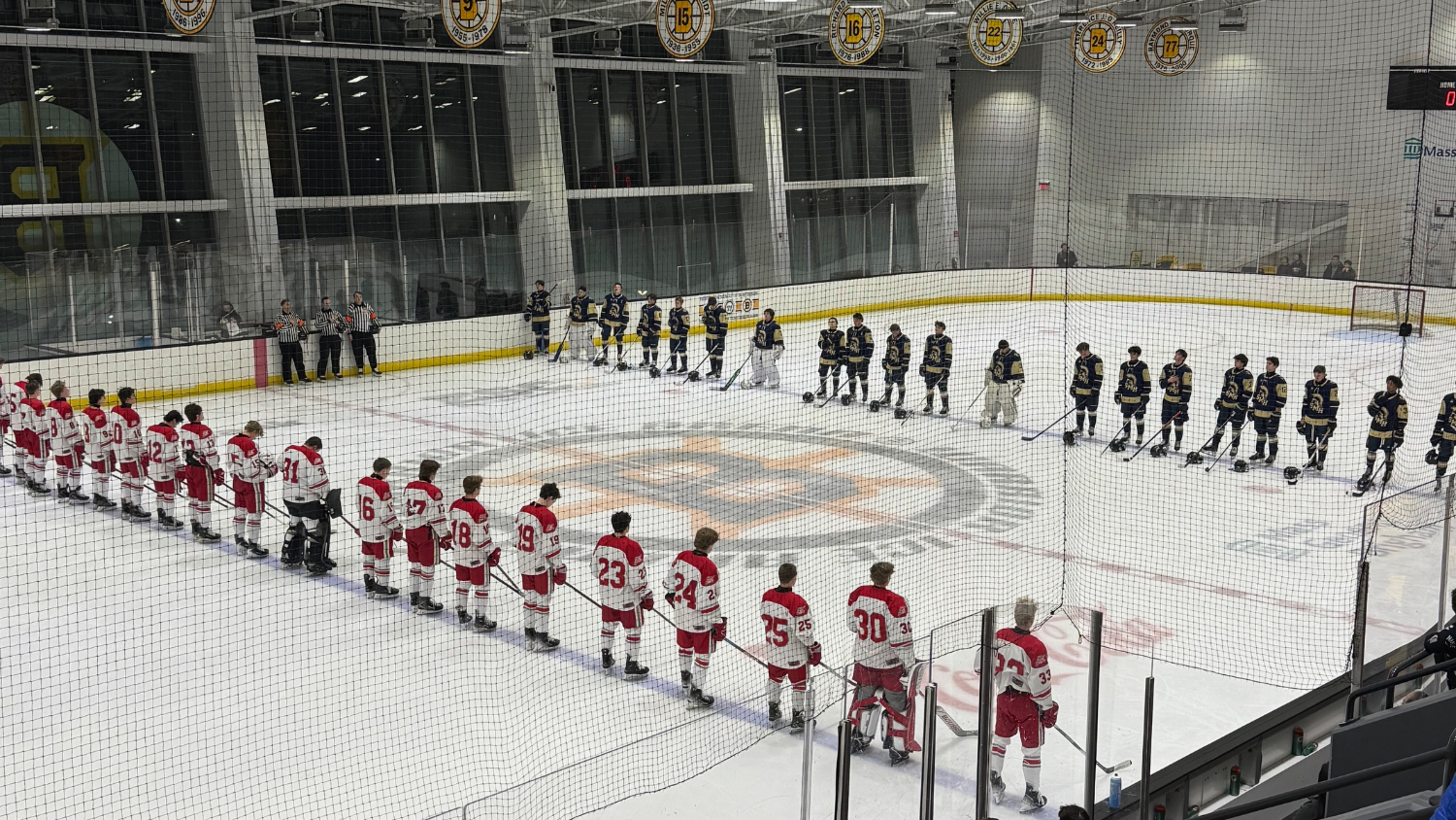Catholic Memorial came out firing in the second period but again it was Anderson making some big time saves, none more impressive than a windmill glove save on a breakaway to keep CM off the board. However, CM would break through at the 6:27 mark when junior Michael Melvin would take a pass from senior James Baker and knot the game at 1. Junior Liam McKinney had a second assist on the play. After some big hits and near misses by both teams, the period would end with the score 1-1. Shots after two were CM 16 for a two-period total of 29 and St Mary’s Lynn 5 for a two-period total of 11.