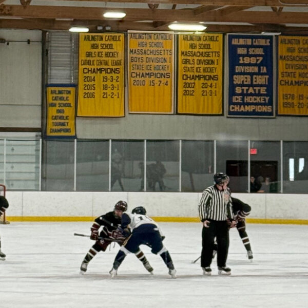 Arlington, MA – The Arlington Catholic Cougars and the Concord Carlisle Patriots clashed on New Year’s Eve at Ed Burns Arena. The Cougars got on the board first at the 10:55…